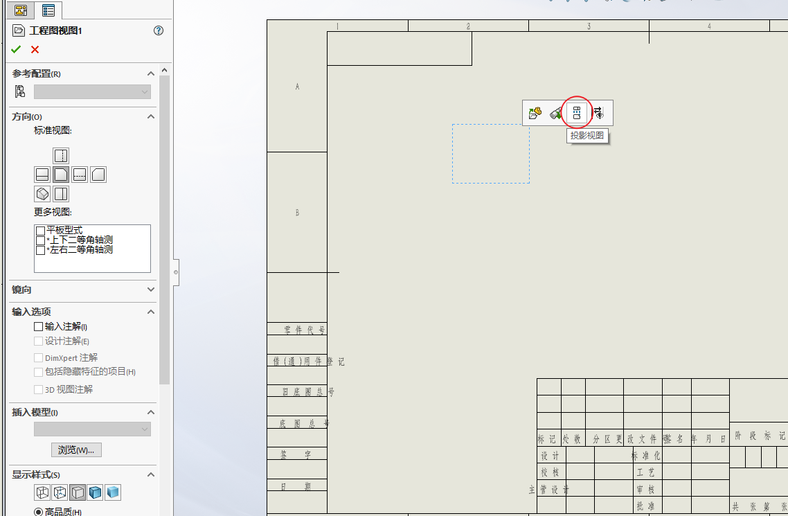 3、默认会添加一个主视图,然后可以点击投影视图添加其他视图。