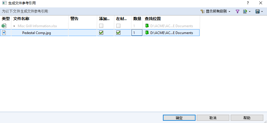 对于CAD文件,可以把零件作为参考关联到装配体,或者把零件或装配体关联到工程图等。如果我们还希望建立Office文件,PDF文件以及图片等关联,这时候用户可以手动在文件间定义参考引用,这便于我们把相关文件绑定在一起。