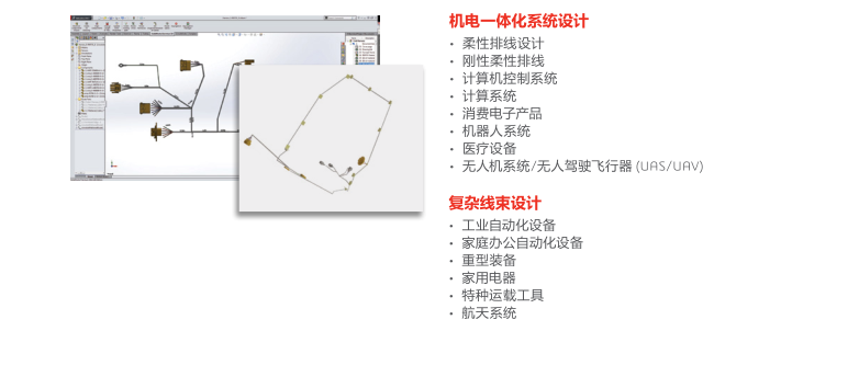 • 自动步路:先进的 SOLIDWORKS 布线技术可简化 3D CAD模型中的电线、电缆和线束自动布线过程。