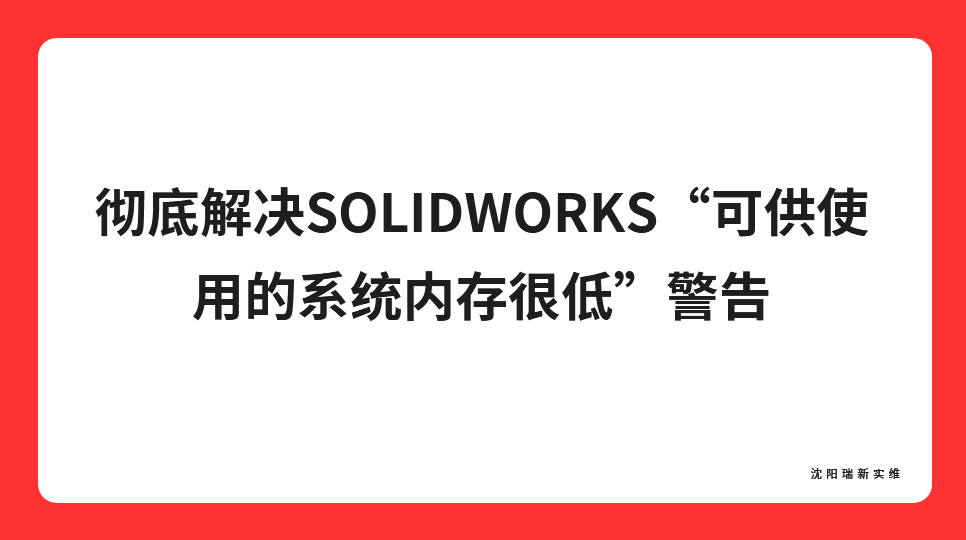 彻底解决SOLIDWORKS“可供使用的系统内存很低”警告