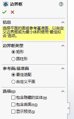 在SOLIDWORKS中利用“边界框”功能,可以在模型周围快速创建边界框,以帮助确定空间和尺寸要求,例如运输和包装产品所需的空间,加工零件所需的原材料的最小尺寸。