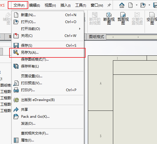 6、将创建好的视图更改文件名,将保存类型改为“工程图模板”并保存到如下路径中。