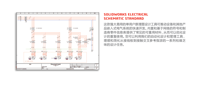 • 制造商的电气零部件库:内容丰富的集成制造商零件库,通过易于使用的导入工具和向导提供可轻松自定义并调整的零件库。